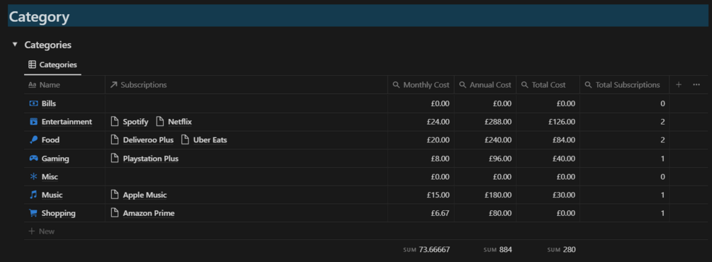 • Easily create and assign different categories to your subscriptions. This category system allows you to see statistics about the subscriptions you have assigned to the categories.